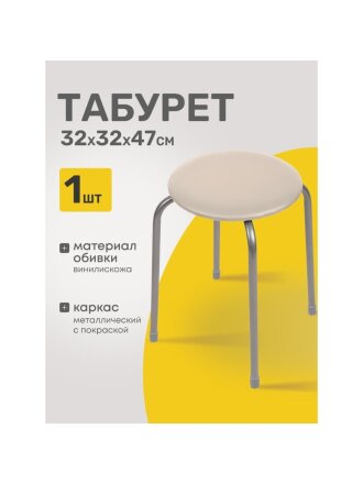 Табурет 320х320х470 мм, слоновая кость, сиденье круглое, винилискожа, на болтах, на 4-х металл опорах, Nika, Фабрик 2, ТФ02/СК