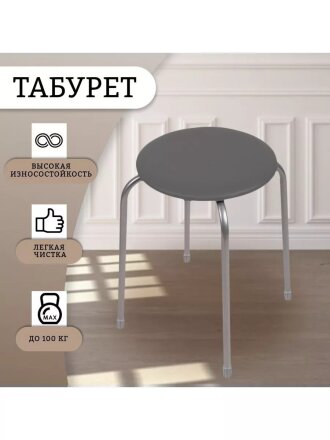 Табурет 320х320х470 мм, серый, сиденье круглое, винилискожа, на болтах, на четырех металлических опорах, Nika, ТЭ2/С