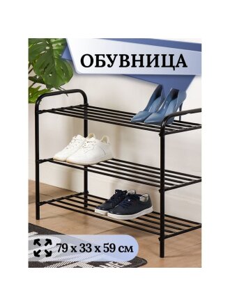 Полка для обуви, металл, 3 секции, 79х33х59 см, черная, Nika, ЭТК3/Ч