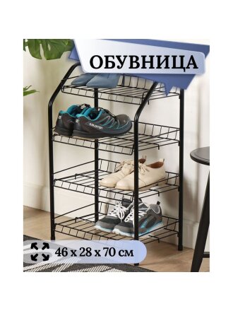 Полка для обуви, металл, 4 секции, 46х28х70 см, разборная, черная, Nika, ЭТ2/Ч