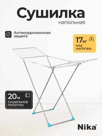 Сушилка для белья напольная, полотно 18 м, 177х53.5х96/109 см, складная, 18 прутьев, 15 кг, Nika, СБ1