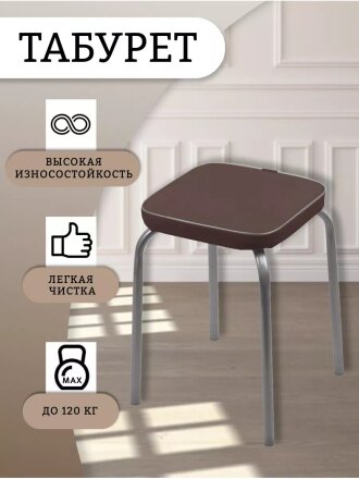 Табурет 320х320х460 мм, коричневый, сиденье квадратное, винилискожа, на болтах, на четырех металлических опорах, Nika, Фабрик 3, ТФ03
