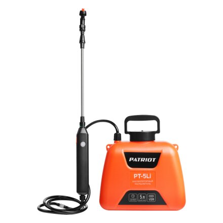 Опрыскиватель садовый аккумуляторный, Patriot, 5 л, Li-ion, 2.4 А.ч, 3.7 В, пластик, ранцевый, телескопическая штанга, 600 мм, PT-5Li