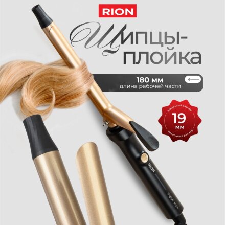 Щипцы-плойка Rion, TB-2002A-19, 55 Вт, керамическое покрытие, защита от перегрева, 230 °, черный с пудровым