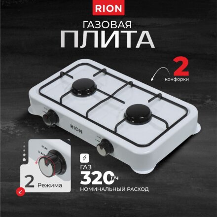 Плита газовая настольная, 2 конфорки, белая, Rion, 6032W