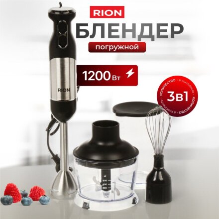 Блендер 1200 Вт, 2 скорости, 3 в 1, Rion, DZ-2301S, черный