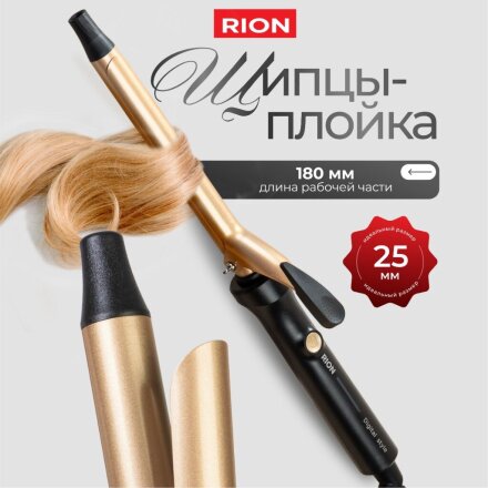 Щипцы-плойка Rion, TB-2002A-25, 70 Вт, керамическое покрытие, защита от перегрева, 230 °, 220 В, черный с пудровым