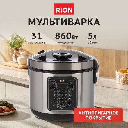 Мультиварка Rion, GB-MC1037, 31 программа, 5 л, 860 Вт, тефлоновое покрытие чаши, антипригарное покрытие