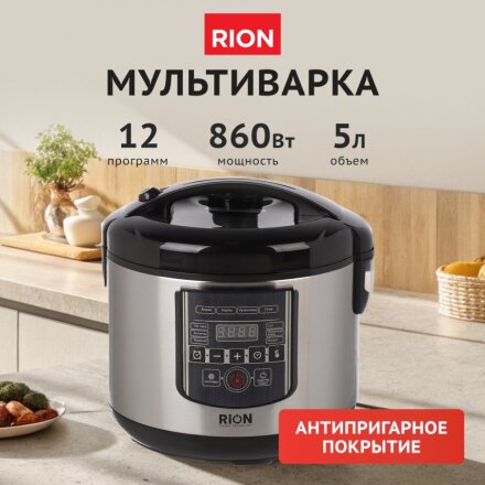 Мультиварка Rion, GB-MC38, 12 программ, 5 л, 860 Вт, тефлоновое покрытие чаши, антипригарное покрытие
