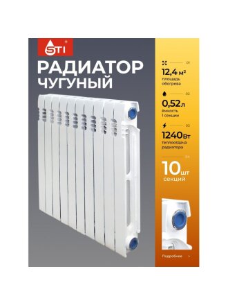 Радиатор чугун, 500х80 мм, STI, Nova, 10 секций