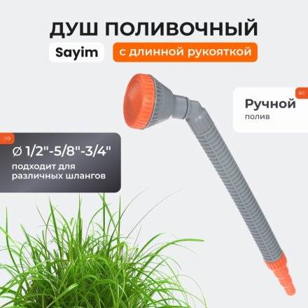 Душ поливочный 1/2"-5/8"-3/4", с длинной рукояткой, изогнутый, Sayim, 6700