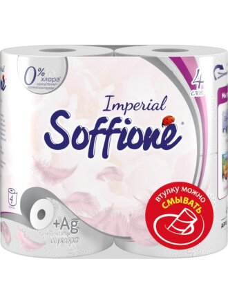 Туалетная бумага Soffione, Imperial, 4 слоя, 4 шт, 18.2 м, с втулкой, белая