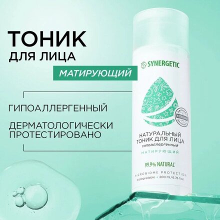 Тоник для лица Synergetic, Матирующий, 200 мл