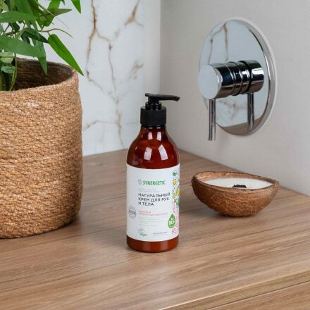 Крем для рук и тела, Synergetic, Пачули и ароматный бергамот, увлажнение, питание, 380 мл