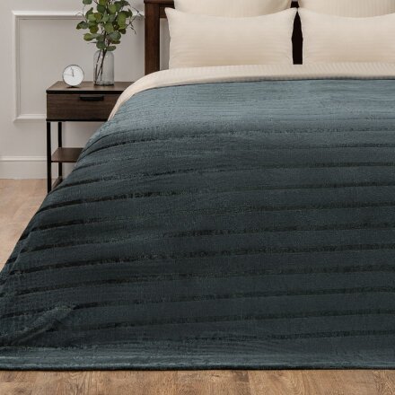 Плед евро, 200х220 см, фланель, 100% полиэстер, Texrepublic, Страйп, серый, 94358