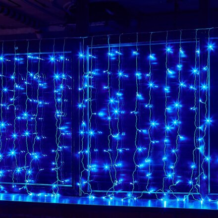 Занавес светодиодный 240 ламп, 3х2 м, 8 режимов, Uniel, свет синий, прозрачный, 07942
