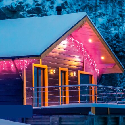 Бахрома светодиодная 195, 12 м, Uniel, розовый свет, с эффектом мерцания, на улице/в помещении, сетевая, UL-00010881