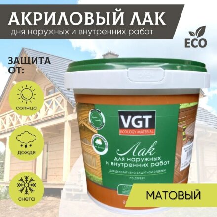 Лак VGT, матовый, акриловый, бесцветный, для внутренних и наружных работ, 0.9 кг