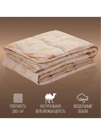 Одеяло 1.5-спальное, 140х205 см, Верблюжья шерсть, 300 г/м2, всесезонное, чехол 100% хлопок, кант, Verossa