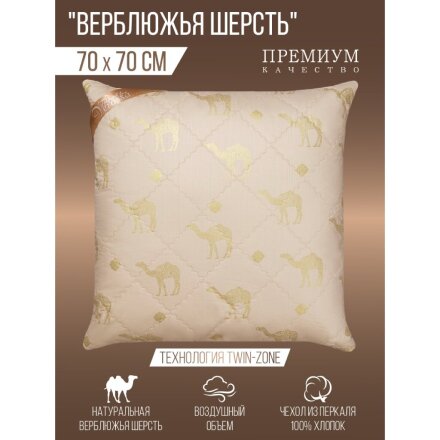 Подушка 70 х 70 см, Верблюжья шерсть, 170920/158933, чехол хлопок, Verossa
