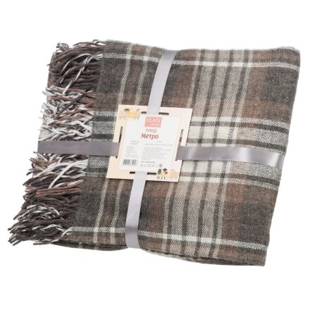 Плед 1.5-спальный, 140х200 см, 50% шерсть, 30% полиэстер, 20% ПАН, Vladi, Метро 4/Canny, белый, серый, коричневый, 50175