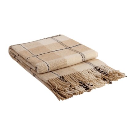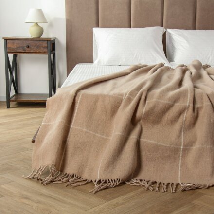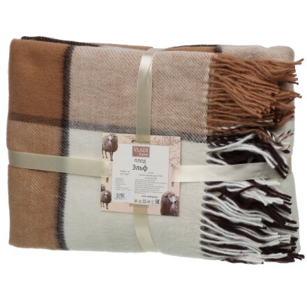 Плед 1.5-спальный, 140х200 см, 70% новозеландская шерсть, 30% полиэстер, Vladi, Эльф, Liam, бело-бежево-коричневый