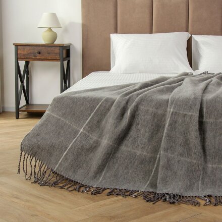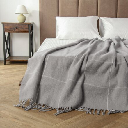 Плед 1.5-спальный, 140х200 см, 100% новозеландская шерсть, Vladi, Осло, белый, светло-серый, 12S/BATTLE