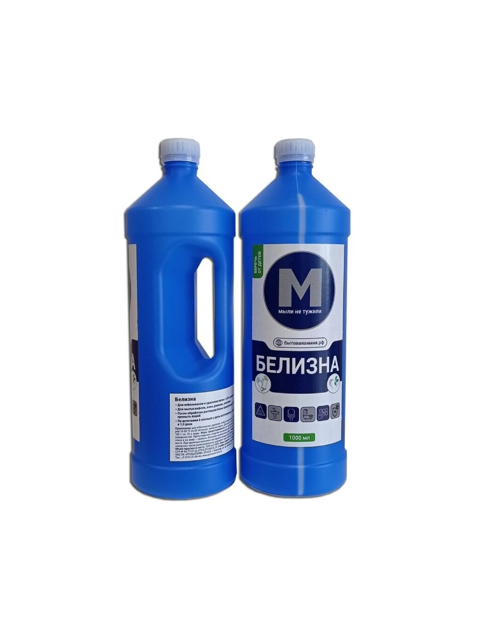 Белизна Мыли не Тужили предназначена для отбеливания и удаления пятен с хлопчато-бумажных и льняных тканей, а также для мытья посуды, кафеля, ванн, раковин и унитазов.