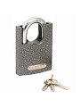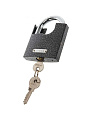 Замок предназначен для запирания дверей, снабженных дверными проушинами. Замок автоматический, т.е. закрывается без использования ключа. В комплект входят 3 стальных ключа с металлической головкой.