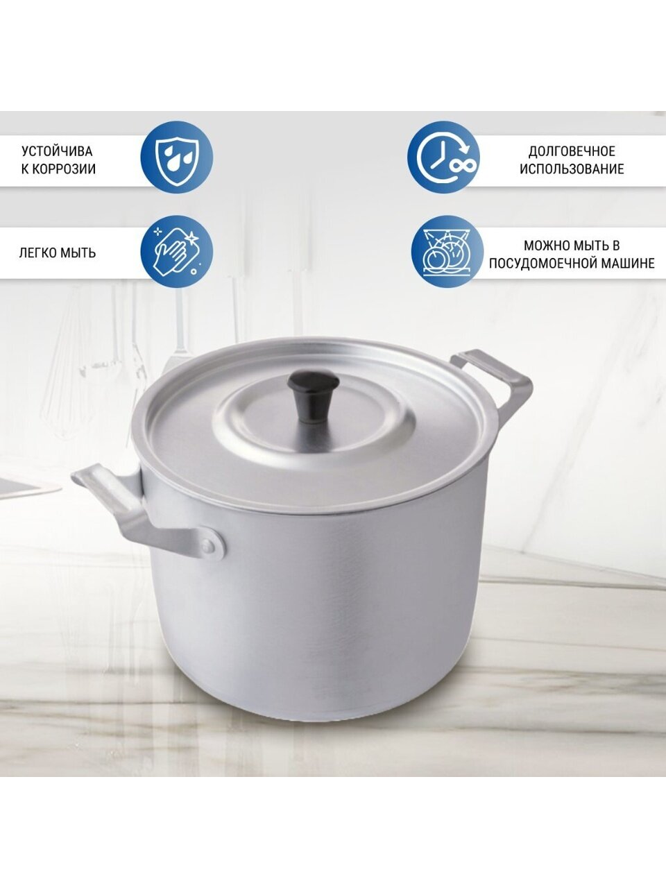 Покупатели часто спрашивают, подходит ли эта кастрюля для индукционной плиты — ответ: нет, она совместима только с газовыми, электрическими и стеклокерамическими плитами. В отличие от некоторых аналогов с толстым многослойным дном, здесь используется однослойный алюминий толщиной 1,5 мм, что обеспечивает легкость и удобство в транспортировке. Кастрюля легко моется вручную и в посудомоечной машине, что экономит ваше время.