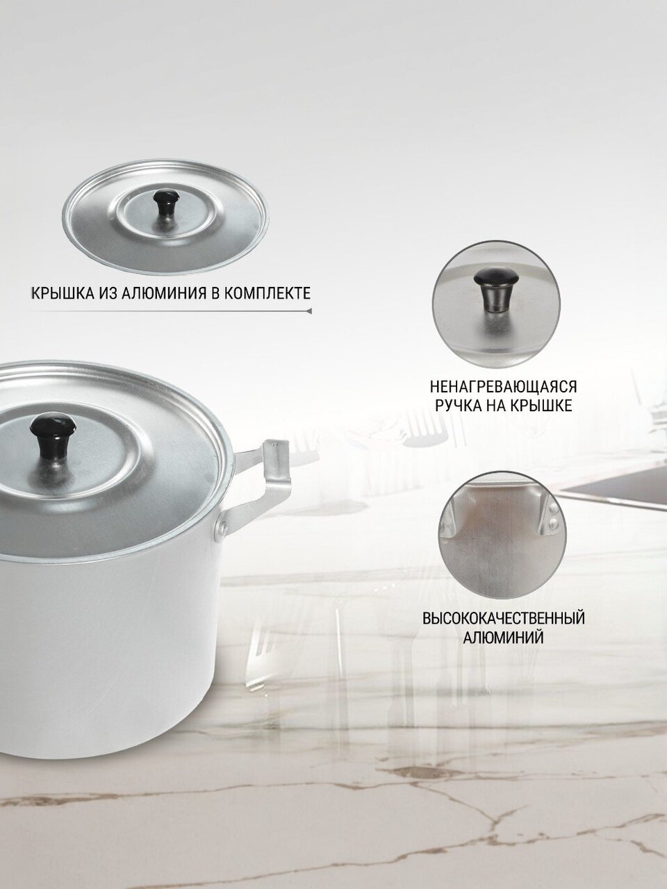 Кастрюля Scovo 4.5 л из алюминия — легкая и вместительная посуда для дома и дачи. Готовьте супы, макароны, пельмени без пригорания и лишних хлопот.