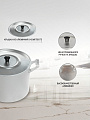 Диаметр кастрюли и крышки — 20 см, высота с крышкой — 16 см, без крышки — 14.5 см. Толщина дна — 1.6 мм, объем — 4.5 л.