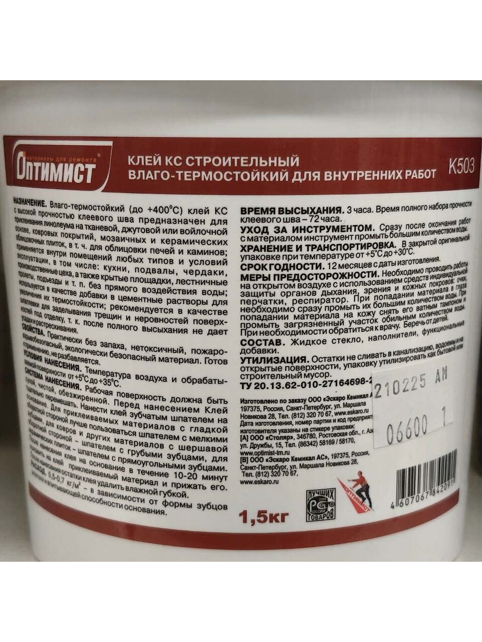 Данный клей предназначен для внутренних работ. Имеет высокую прочность клеевого шва на разрыв, не дает усадки и растрескивания после высыхания.