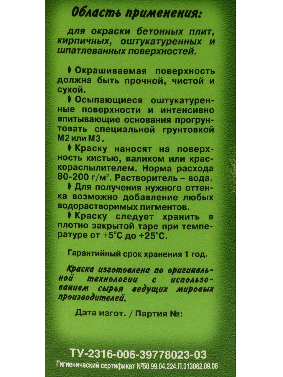 | Расход, кг/м2 | 0.3 |