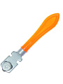 Стеклорез — это инструмент, применяемый для раскроя стекла и тонкой керамической плитки. Главная рабочая деталь роликового стеклореза — режущий ролик из твердого сплава марки ВК3. Один из роликов — рабочий, а еще два идут как запасные. Данные элементы являются расходным материалом и при износе заменяются на новые. Роликовый стеклорез может резать толстый материал до 10 мм толщиной.