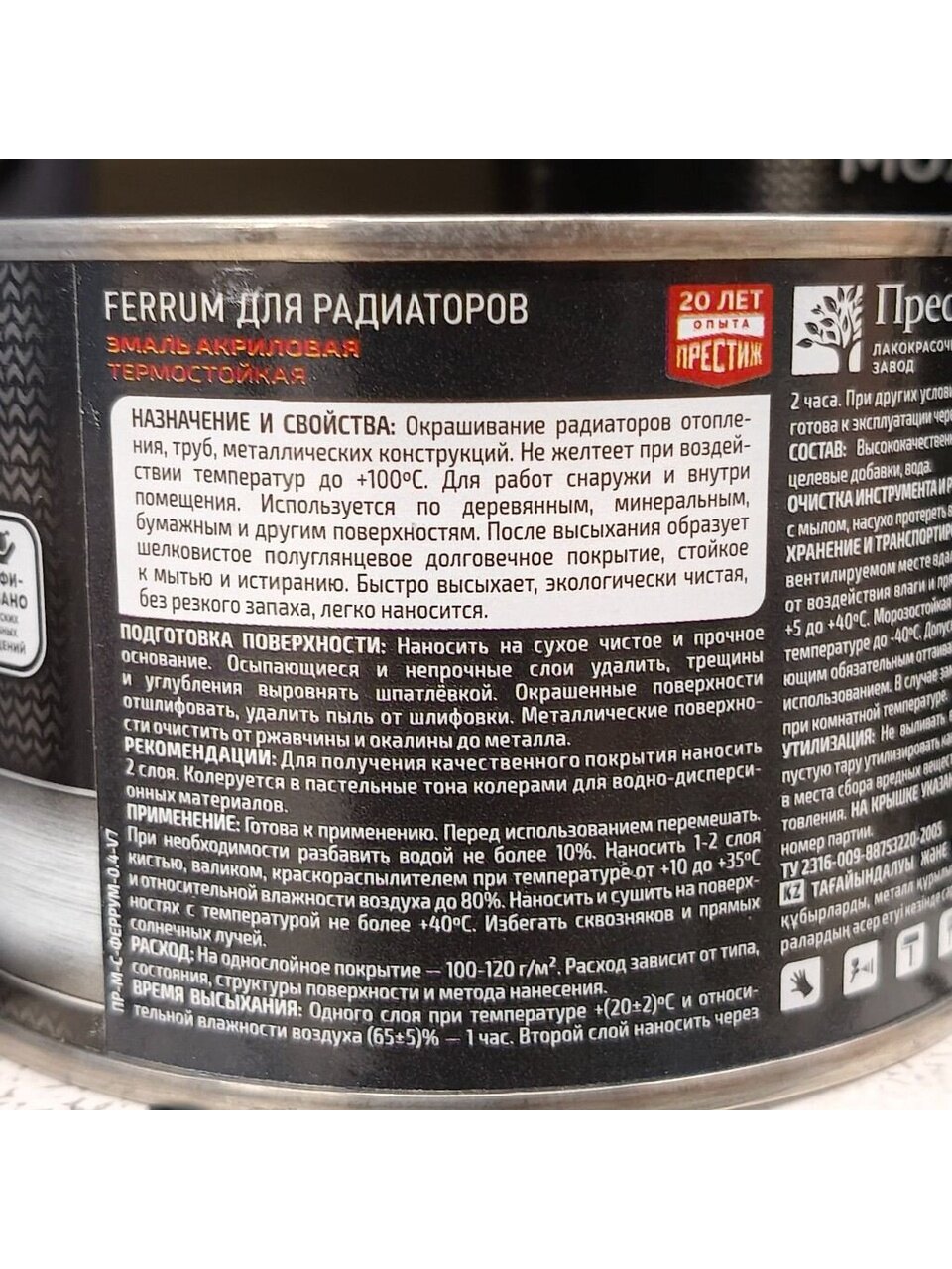 Краска изготовлена по традиционным технологиям с применением инновационных методов обработки и с использованием модулирующих добавок. Наполнитель — металлическая пудра. Эмаль обладает антикоррозионными свойствами, термостойкая. На основе натуральных растительных масел. Менее токсичная и атмосферостойкая. Предназначена для окрашивания радиаторов отопления, труб, металлических конструкций. Не желтеет при воздействии температур до +100°С. Подходит для работ снаружи и внутри помещений. Используется по деревянным, минеральным, бумажным и другим поверхностям.