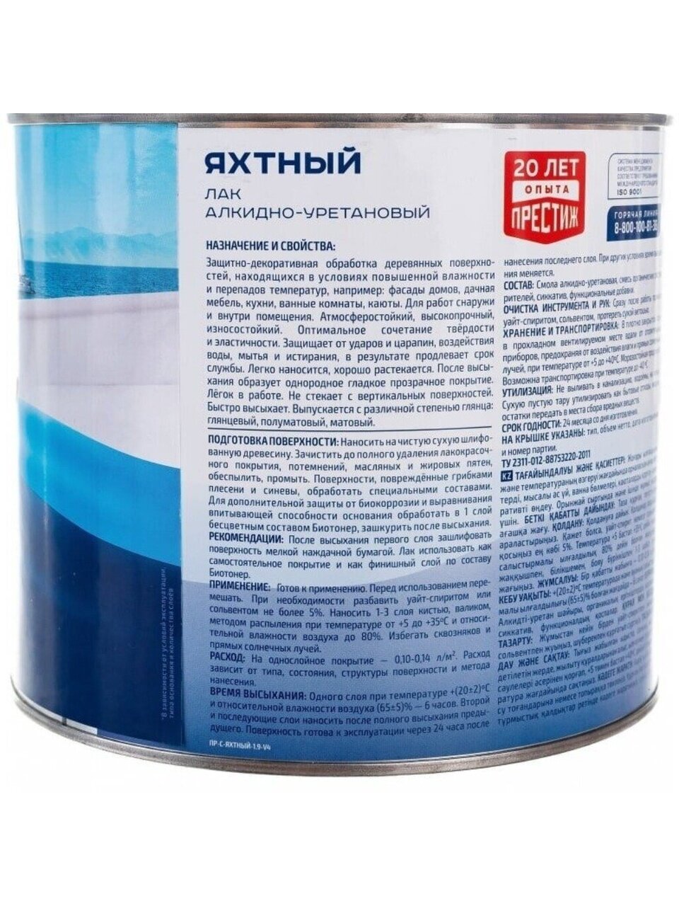 Создает оптимальное сочетание твердости и гибкости, обеспечивая защиту от ударов, царапин, воды и истирания, использование яхтного лака Престиж помогает продлить срок службы деревянных поверхностей и сохранить их внешний вид на долгие годы.