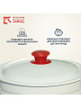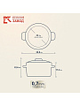 Диаметр кастрюли, дна и крышки — 22 см; высота без крышки — 17,2 см, с крышкой — 22,6 см, вес — 1,55 кг.