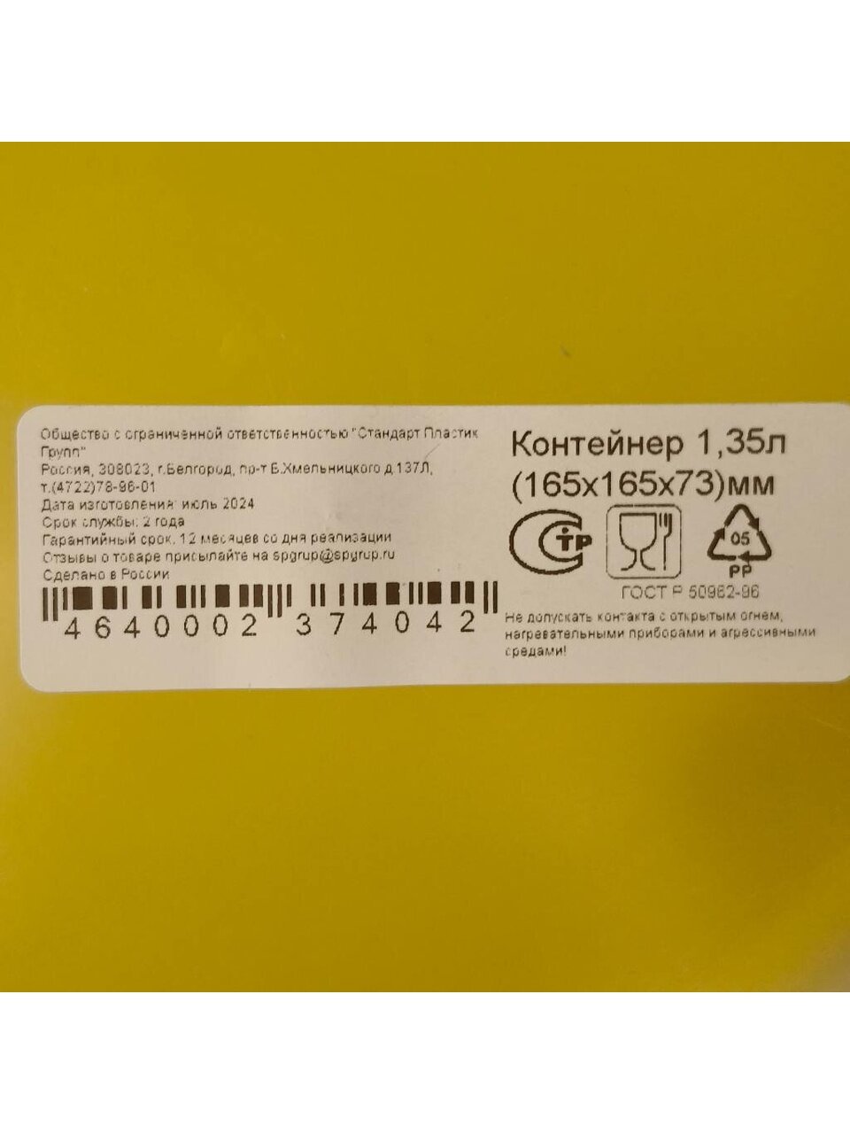 Оформите заказ на пищевой контейнер объёмом 1.35 л — получите надёжную ёмкость для хранения продуктов с доставкой по выгодной цене. Пластик безопасен, подходит для многократного использования, не требует особого ухода.
