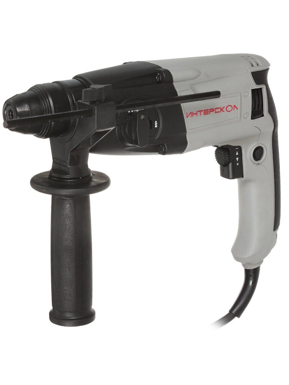 Перфоратор имеет возможность плавного регулирования частоты вращения инструмента от минимального до максимального значения путем изменения усилия нажатия на клавишу, а также возможность смены направления вращения инструмента на противоположенное (реверс).