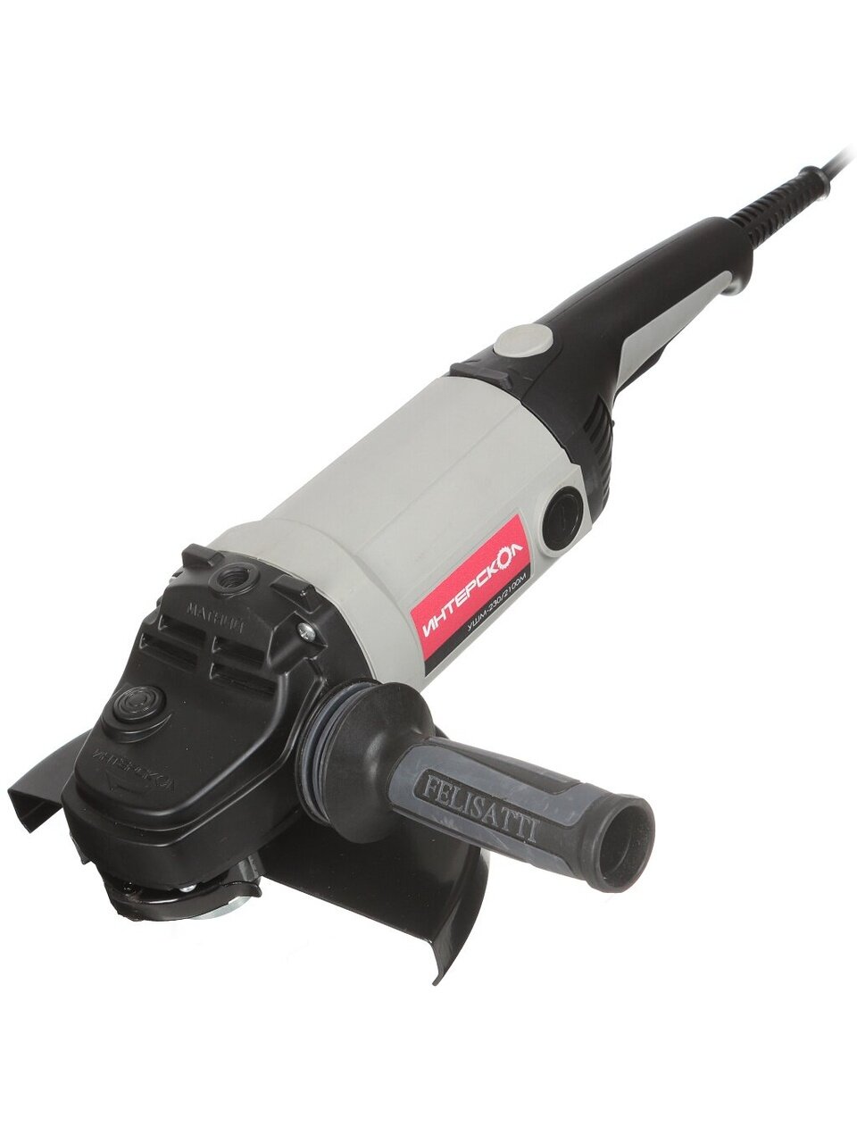 Угловая шлифовальная машина Интерскол УШМ-230/2100М состоит из привода, представляющего собой коллекторный электродвигатель, размещенный в пластмассовом корпусе, и углового редуктора в корпусе из магниевого сплава. Рабочий инструмент крепится на резьбовом конце шпинделя. Машина может работать шлифовальным, полировальным или отрезным кругом, а также зачистным инструментом: металлическими или капроновыми чашечными и дисковыми щетками, лепестковыми шлифовальными головками и т.п.