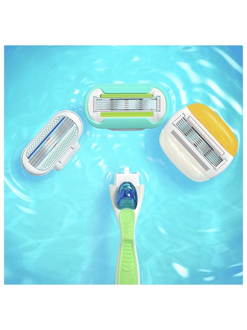 Venus Breeze - это подушечки геля для бритья, обогащенные натуральными маслами, со свежим тропическим запахом встроены в бритву. С Venus Breeze не нужен гель для бритья.