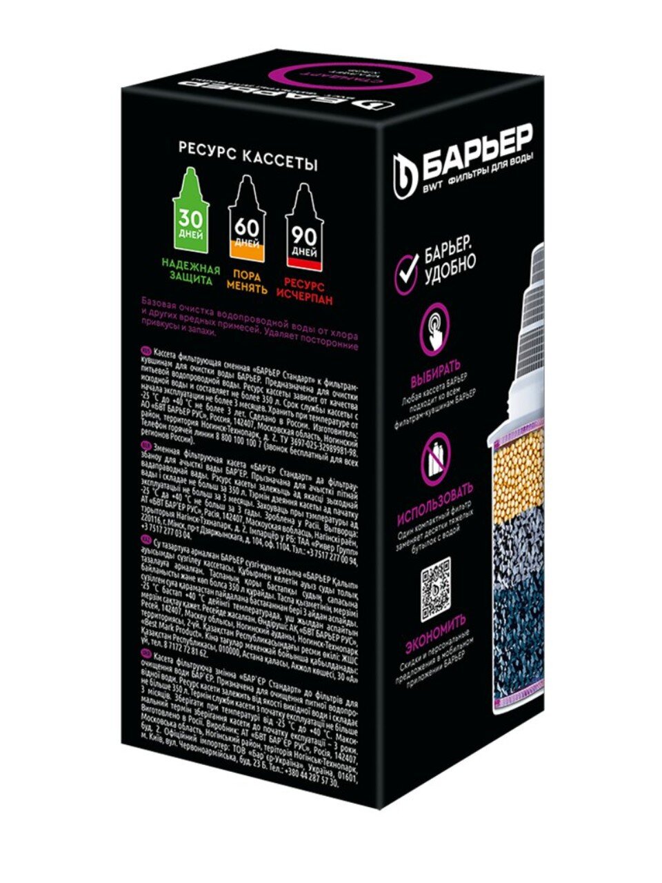 Кассета «Стандарт» для фильтра-кувшина с рабочим ресурсом до 350 литров разработана специально для очистки воды от органических и неорганических примесей, в том числе имеющих вид мельчайших частиц. Дополнительно кассета удаляет ионы тяжелых металлов.