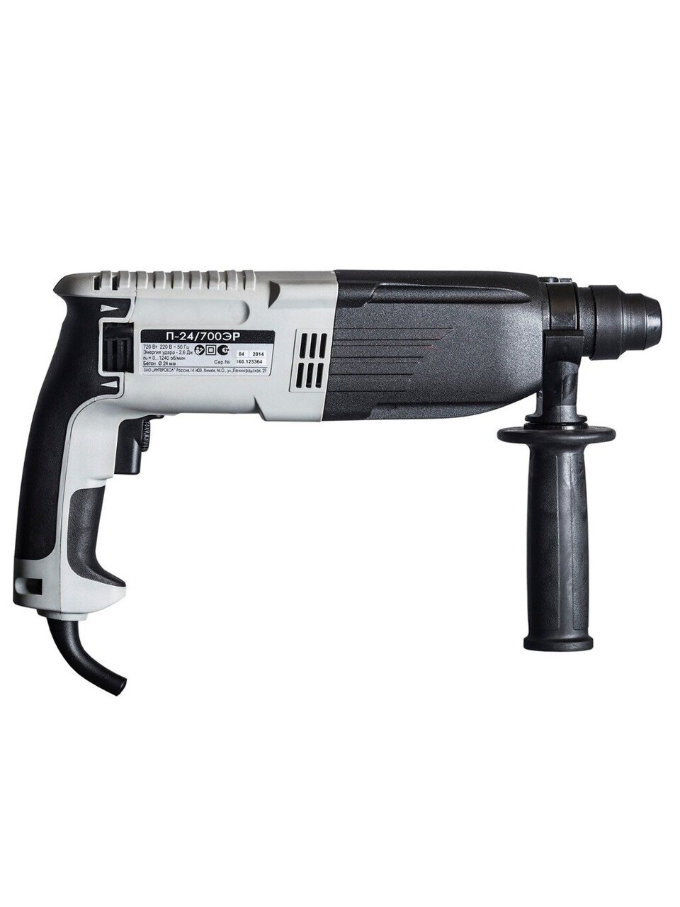 Перфоратор представляет собой машину ударно-вращательного действия, оснащенную ударным механизмом компрессионно-вакуумного типа и состоящую из электропривода и исполнительного механизма. Приводом служит коллекторный электродвигатель, размещённый в пластмассовом корпусе.
