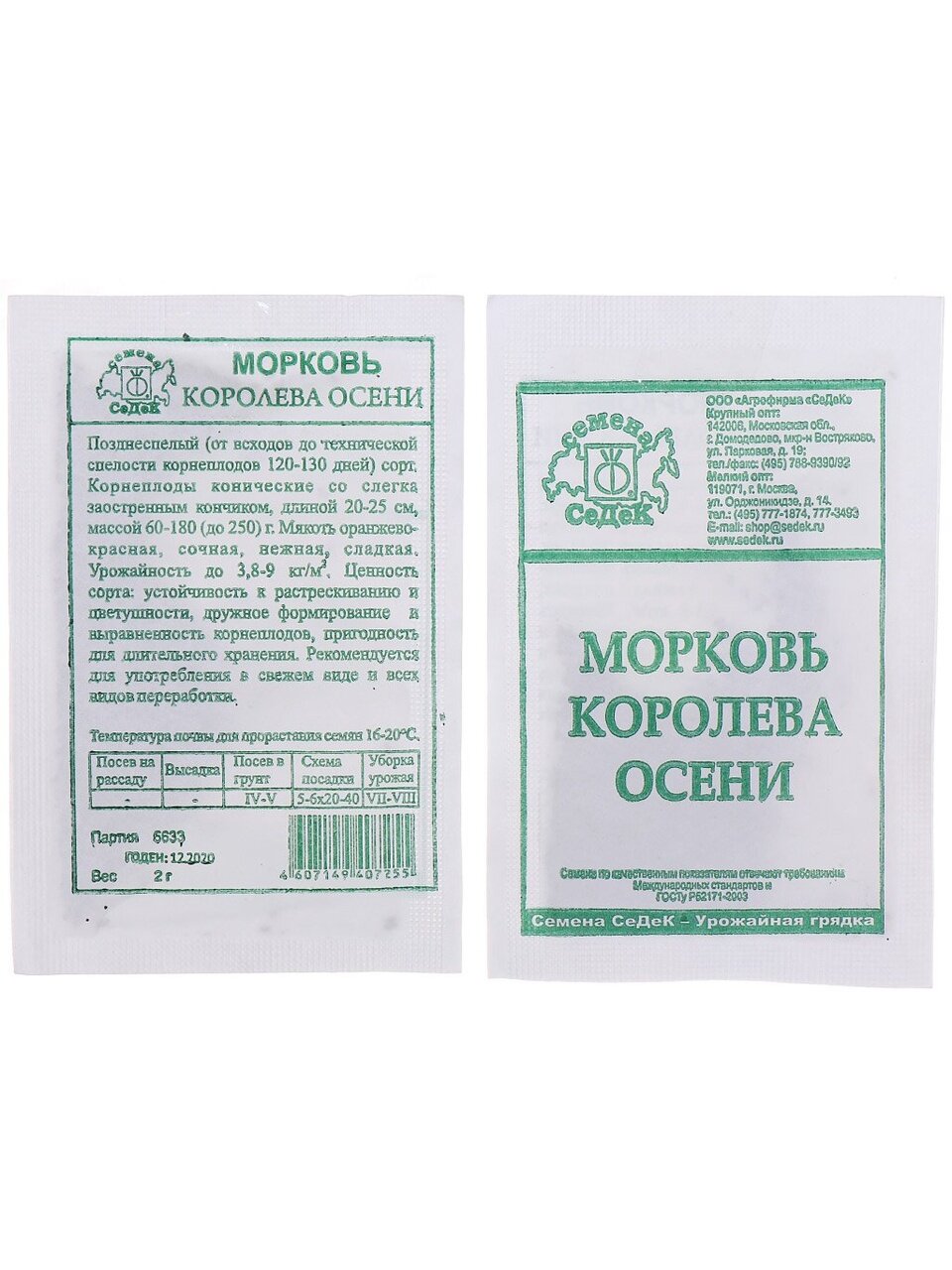 «Семена Морковь, Королева Осени, 2 г, белая упаковка, Седек» можно купить мелким, средним и крупным оптом по привлекательным ценам благодаря тому, что мы сотрудничаем с российскими и международными производителями напрямую, без посредников.