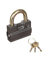 Конструкция замка повышает стойкость к взлому, а закаленная дужка снижает вероятность её распила. Корпус изготовлен из стали, что гарантирует долгий срок службы.