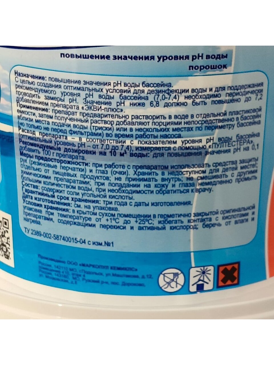 Откройте для себя эффективное решение для поддержания идеального состояния воды в бассейне с помощью средства для повышения pH "Экви-Плюс" от Маркопул Кемиклс. Этот продукт предназначен для создания оптимальных условий дезинфекции и поддержания рекомендуемого уровня pH воды в бассейне. С его помощью можно легко и быстро повысить значение рН воды, что критически важно для комфортного и безопасного плавания.