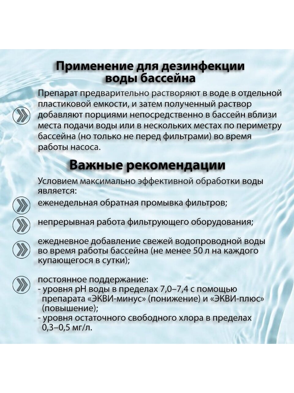 Покупка средства "Экви-Плюс" – это инвестиция в здоровье и комфорт. Продукт обеспечивает чистоту и безопасность воды, что особенно важно для семей с детьми. Кроме того, регулярное использование этого средства продлевает срок службы оборудования бассейна, предотвращая коррозию и другие повреждения. Выбирайте "Экви-Плюс" для эффективной и безопасной очистки воды в вашем бассейне.