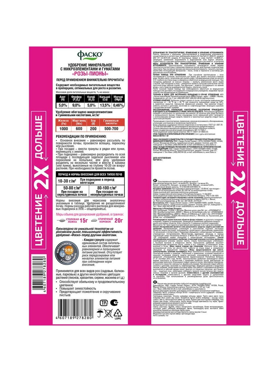 Откройте для себя идеальное минеральное удобрение для роз и пионов — продукт, который сделает ваш сад настоящим произведением искусства. Удобрение 5М от бренда Фаско в гранулах весом 1 кг — это ключ к пышному цветению и здоровому росту растений.