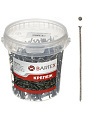 Гвоздь выполнен в виде прямого и длинного стержня с небольшими зазубринами вблизи шляпки, что позволяет телу гвоздя лучше фиксироваться в материале. Соединение получается более прочным.